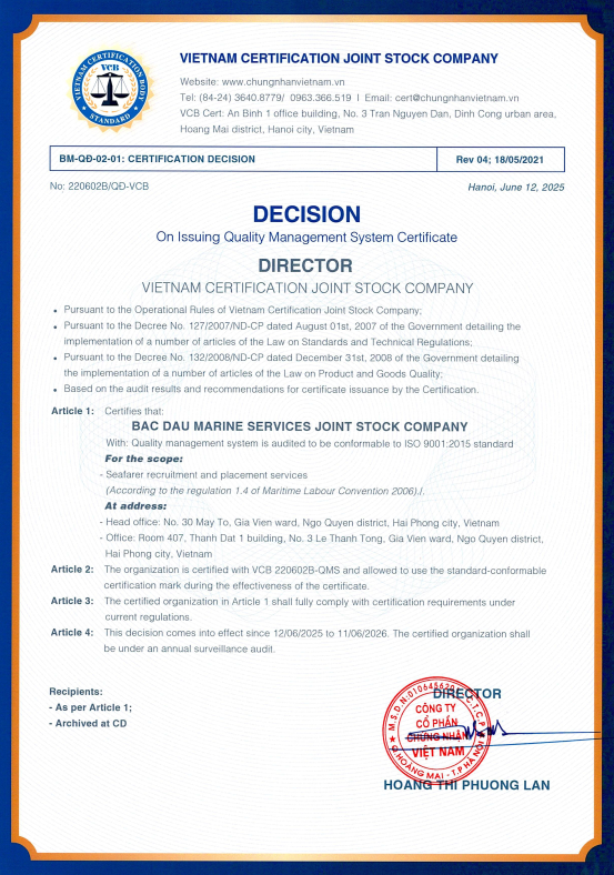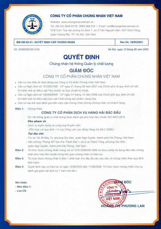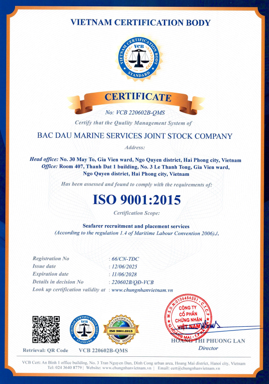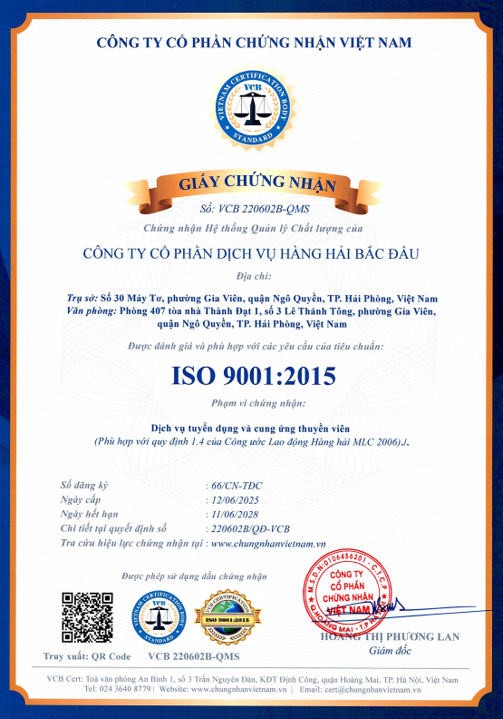 TUYỂN DỤNG VÀ CUNG ỨNG THUYỀN VIÊN HÀNG HẢI - ISO 9001: 2015